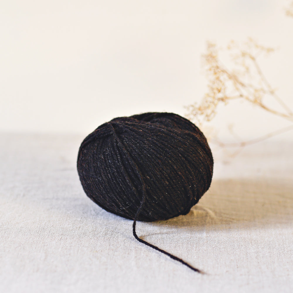 フランス プロヴァンス産のメリノとポルトガル アレンテージョ渓谷産のブラックメリノで紡がれた毛糸です。